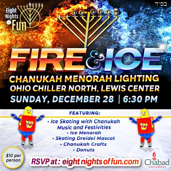 Saturday, December 28 at 7:00 pm. Ice Skating and Menorah Lighting at Ohio Chiller North, Lewis Center.